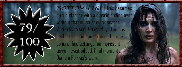 The performers of the soul :: The movie is led by Maya Luna who might be the greatest scream queen any slasher movie has produced in some time. From the beginning itself she creates a certain interest among the horror fans, and becomes that character who makes the slasher more interesting than it could have ever been. There are some fine moments that she provides, and shows that her acting skills can make any slasher horror better. She shows the multiple faces of the character and its adaptations as this is one dynamic character in horror that we do not usually see. She is unforgettable in those final moments, in her underclothes and covered in blood, with that grin that is going to stay with the viewer for long. Daniela Porras is not that far behind in that scream queen status, but remains the usual kind of horror character for a slasher, and has the usual dialogues and scenes for such a movie, and she perfects the same. The others only come as supporting to this work, while the antagonist by David Vaughn also excels.