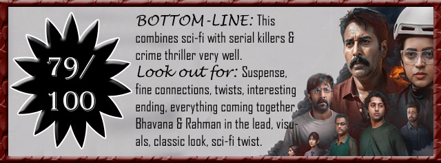 The claws of flaw :: The movie does leave some of its emotions back in the first half, as the mystery takes more of a hold. The emotional depth losses the hold and by the end, we are more wondering about morally grey science fiction elements. The main characters talk too less to each other as the deviations seem to take them apart. As the serial killers are a different kind of psychopaths, the dark side never really gets to be that scary in end. The movie seems to lack the hype that it had deserved, and for the same, do not have that many screens to help its run. The slow beginnings of the movie might not please everyone and the movie seems a little too long for this content. Without that much focus on the same thing again and again, the overall length could have been reduced. The philosophical elements could have also been further explored. In between, there are moments which seemed to be created to make things more convenient and some consistency is lost in the process. The ending could have also meant more.