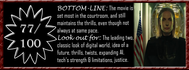 The claws of flaw :: The feeling of having seen this idea before will surely be around, as we come across the idea for not the first time, as there has only recently been the movie known as Artificial Justice in Spanish, and we also keep remembering about a Tom Cruise starrer from some more years ago. There is some unrealistic side that comes in even if we avoid the genre, with the willing suspension of disbelief not always getting its due. The ideas of artificial intelligence and justice do not also go that deep, as we are more with the surface level journey here. With such big ideas on paper, maybe the movie could have dived in deeper. The cliches could have been pushed to the side in this new world which deserved better strength. There is also a certain amount of artificiality related to the same, and the pacing remains uneven. The characterization is not that much present to be seen either. The side characters are just present seemingly because there was a need for the main character to gather evidence, and most of the action takes place in the AI courtroom and with live and recorded footages from outside which might leave a few not happy.