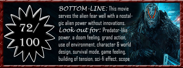 The claws of flaw :: The movie does not go deep into the material, and is happy with the surface level journey. There seems to be a little bit too much dependance on the early science fiction movies, including Alien and Predator as well as those sequels. The innovation was there to be taken, but it does not come to the front. The script could have used a push, with more classic elements, and as we see how the movie ended, there could have been more clues in between, with better connection to the title. By the end of the movie, saving the girl gets too much of an attention despite her being introduced as a fighter in captivity in the beginning. Some of the characters are just there for the sake of being there, and even the main characters seem to get less attention to their detail. The moments of survival and twists could have also been better written to create better impact, and alien invasions could have been explained with visuals. There were so many opportunities to make the situations more and more interesting.