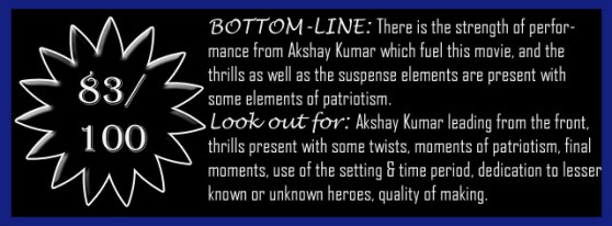 Performers of the soul :: You see Akshay Kumar doing what he has done really well with a few movies in the past which has dealt with similar topics and situations. He had faced similar moments in films like Baby and Airlift, and had done the job with so much of quality related to his work – it is something which suits him really well, and we can always trust him to do this kind of job. He would make a perfect spy in a film like this at any moment. I would prefer to see him in films like these, rather than those comedy movies where he is often placed among some lower quality jokes. Lara Dutta as Indira Gandhi might be the biggest surprise which is in store here, even though we knew it from the trailer, and she blends in really well. Vaani Kapoor’s role is more or less the usual one in which we see the lady leads of Bollywood in a movie like this, and that is done well too. Huma Qureshi also has something to add for shorter period of time.