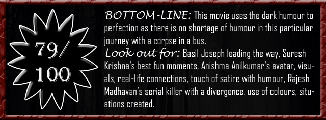 And what complicates things further within chaos? :: Sreekumar is disappointed as he was planning to have the old man as his victim but hopes that he can have the body and make the media feel like it was his victim. But he is not able to take the body away, as Luke comes in for Jessy. The team decides to bury the body, but are not able to do so, with Aruvi feeling that the man is his long-lost father due to the mark on his body. They decide to take the body elsewhere to provide the final rites, but there are so many obstacles that they have to face. This would include people trying to get into the bus, the need to use the bus for the Communist Party purposes and the remaining doubt about Luke being the serial killer. At the same time, the serial killer manages to have some different plans, but none of them would favour Luke and Jessy’s love, Jikku’s upcoming marriage or Aruvi’s love for his father. Can the unexpected team of confused people manage to get out of trouble with none of them dead and buried?