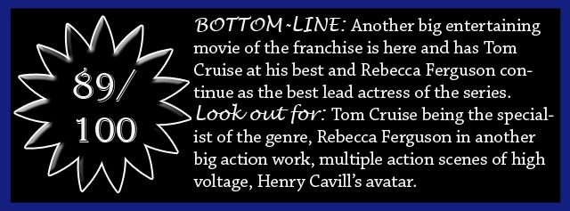 How it finishes :: Mission Impossible movies have always been joy to watch for the action sequences. It is more or less about mission being successful no matter what kind of obstacles are there – we enjoy the same without doubt. Among all those movies, Mission Impossible: Rogue Nation has been my favourite, and this one is a big entertainer like all those other movies of the genre. The thrilling experience that this movie provides with all those action sequences will be difficult to forget. One will keep searching for more Mission Impossible movies, and hoping for the franchise to never end, it has the kind of success story that everyone needs with a movie franchise. Here, we get the success with both the critics as well as the box-office collections; never really the easy thing to do.