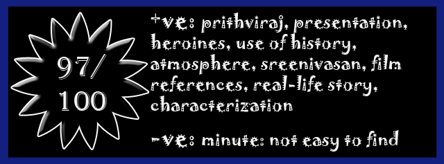 How it finishes :: The movie is incapable of surviving in the theatre of much time, and it was evident from the expressions of the common people who were watching it. Surprisingly, they will like fake movies like Bangalore Days, 1983 and Neelakasam Pachakadal Chuvanna Bhoomi is rather a surprise for me though. After the box-office reports come, lets hope that truth won’t have to take that much of a fall, but the sad and depressing fact is that it will. There is no hope for movies like Apothecary in our theatres. It is not because of any other reason – it is because of the attitude of our own audience who are looking for just stupid fun, not even some intelligent entertainment. People ask for entertainment and they are provided the same, most of the time in a very low quality, but surprisingly, people are more than happy with the same. They come and see their favourite stars, sons of the stars or any relative of their favourite superstar on the screen and watch all the nonsense and clap like there is no tomorrow. The hope is just not there for the meaningful movies.