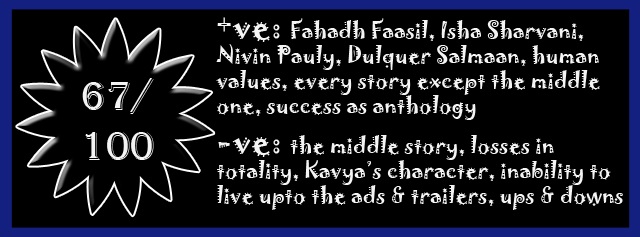 As they say in the movie Neram, there are two types of time, the good time and the bad time, and the good time of Fahadh Faasil had started from Chaappa Kurishu, with no disasters at the box office moving on to Immanuel. I didn’t really like what came later though, but as we know already, another thing about our versatile actor is that we can often identify his career with the quote from Charles Dickens’ A Tale of Two Cities too; “it was the best of times, it was the worst of times” and I would identify the same with his other movies, Annayum Rasoolum and Natholi Oru Cheriya Meenalla. Yes, Diamond Necklace was part of the good time, or the best of times, and it was the best from Lal Jose, no real doubt about that unless you bring Achanurangatha Veedu, Classmates or Arabikkatha into the picture with a handful of logic. Does any of these movies have this simple a plot set in too simple a world, and still come up with such an intriguing situation on screen? No, they were movies of incidents, revolving around one major incident or decision which set the events running while Diamond Necklace belongs to everyday life, and a collection of life; its celebration as the worlds of ups and downs which flows through our life, supported by beautiful songs, “Nilamalare”, “Thottu Thottu” and “Nenjinullil”.