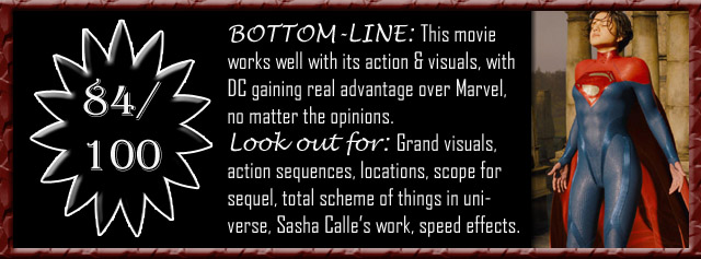 The claws of flaw :: The subplots do suffer in this movie, and sometimes, the movie does not seem to feel the need to explain further. The non-linear feeling never really leaves us either, and there is juggling around, which never ceases to leave us. The makers needed to remember that this movie was made for the common people too, and not just the comic fans and the superhero admirers of all times. The Supergirl, even with the sacrificial actions, is once again wasted, and there is no emotional impact to whatever she does, after her actions in the previous movie. The movie also did not seem to have gained that much of an opinion, maybe the loyal audience wanted something else, and most of us have no idea what the comics about the same idea was dealing with. The character crowding continued even after some of them were dead already, and a feeling of repetition creeps in at times too.