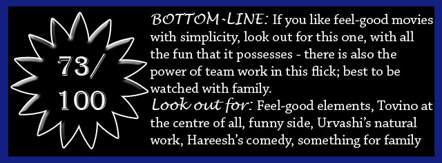 How it finishes :: We know that good horror comedy is really hard to create, especially to make both sides work. This movie aligns more on the side of comedy, but there is always that hidden horror which comes out at rarely, but by the end of the movie, we see the blending of the two genres becoming one effectively. There is no lack of enjoyment at any part of the movie, as we see the situations, and feel the entertainment. There are not many movies that make us think too much about the situations, and we can focus on enjoying the whole thing without second thoughts. There is the scope left for a sequel, and we can expect this to get better. After all, there are so many questions to be answered from the first movie, and there might be a little too much to be done for what could be a series of movies. We can always accept the movies with a certain amount of silliness that worked so well, like Adi Kapyare Koottamani and Kunjiramayanam that keeps us laughing for a very long time.